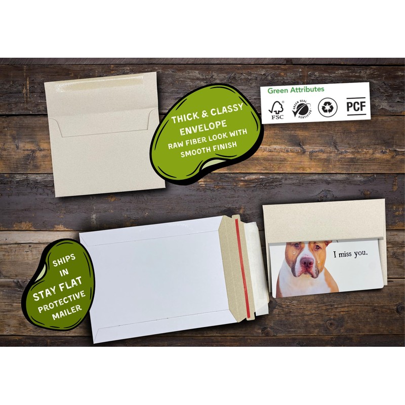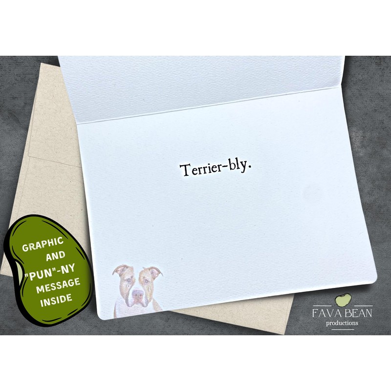 Fava Bean Productions AMERICAN PIT BULL Terrier - I Miss You TERRIER-BLY Greeting Card (5X7 inches) with Envelope. Cute, Sad Dog Image Inside.