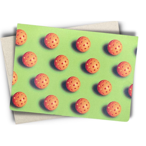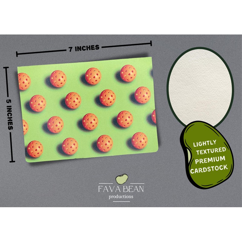 Fava Bean Productions PickleBall Pattern Neon Greeting Card (5X7 inch) with Envelope. Blank with Fun Image inside.