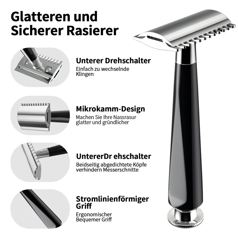 - Classic double edge safety razor: Favali men's wet razor has extreme precision, the ergonomic streamlined handle, comfortable a comfortable grip; the lower rotary switch allows for a blade change in seconds; the incredibly sharp but gentle blades offer you a real barber-like shaving experience in your own home