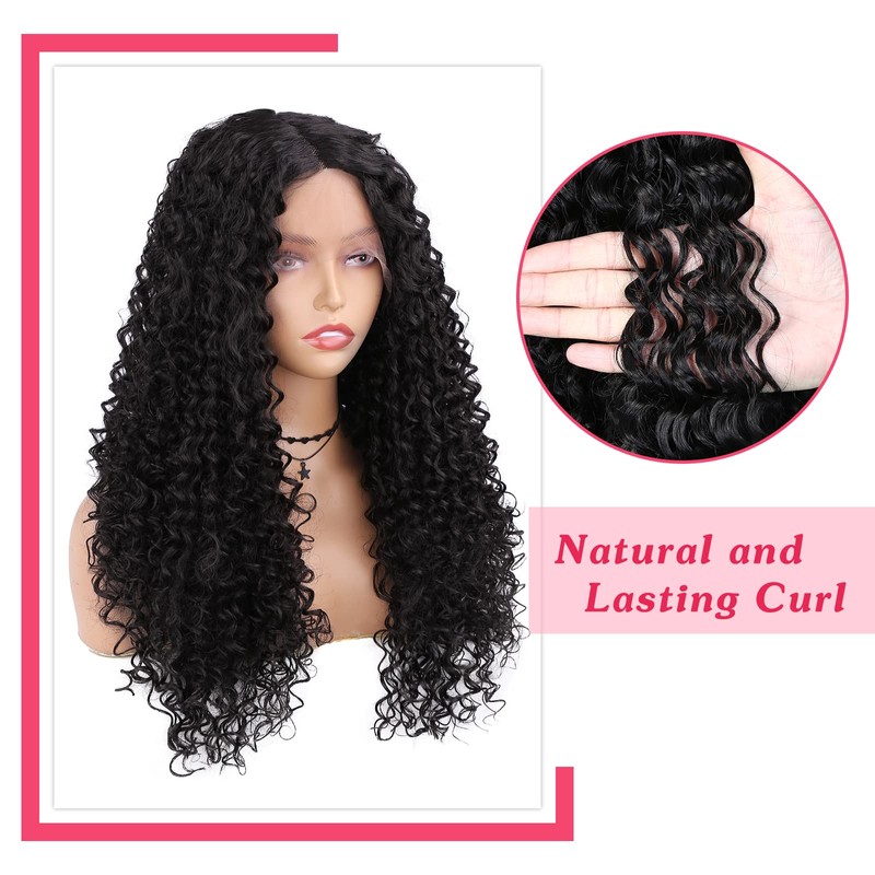 FAVE 13x4x1 Lace Front Wig Kinky Curly Wigs for Black Women 18“ Long Black Wig Deep Wave Heat Resistant Synthetic Wig 150% Density Wigs (1B,18 Inches)