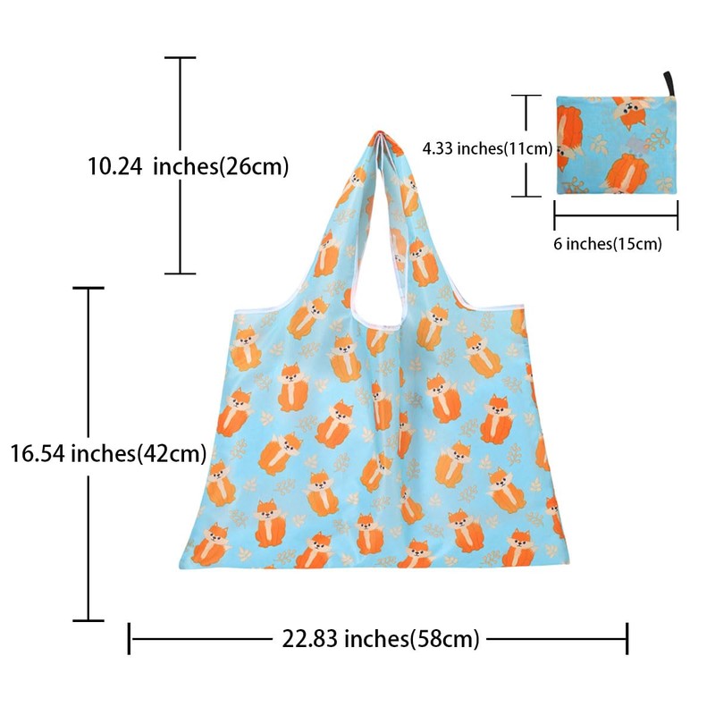 • 【Size】Foldaway shopping bag washable in pouch. 2 different cute patterns flod away large shopping bags. Reusable shopping bags opened size is 58 X 42 + 26 cm / 22.83 X 16.54 + 10.24 inches, size after folded is 15 X 11 cm / 5.91 X 4.33 inches, and solid enough to hold up to 15 kg/ 33 lbs.