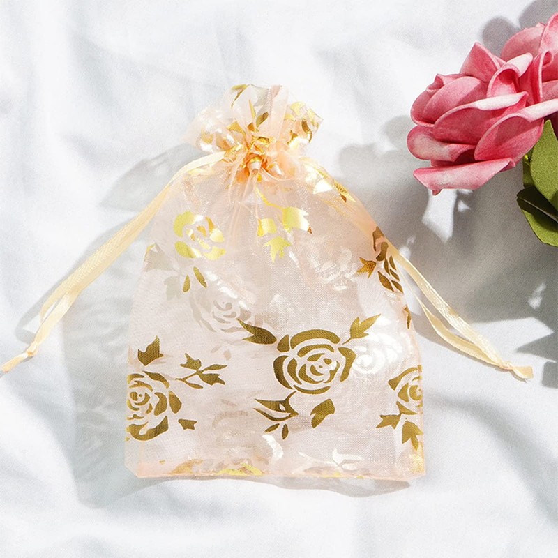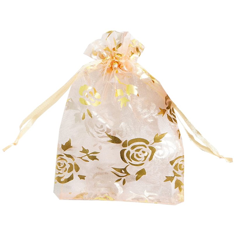 FAVORTALK Organza Bags Lvory Gift Bag Gold Rose Pattern 30 pieces Mesh Material Beautiful Practical for Valentine's Day (Gold Rose Patterned Lvory)