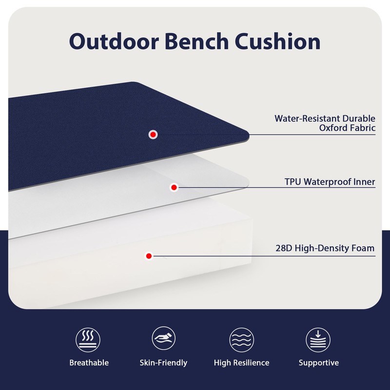 - Waterproof Cover: The Favoyard outdoor furniture cushions has a TPU coated cover with hidden zipper design, all-round waterproof to keep rain out and protect the inside foam. Also, these outdoor bench cushions are super easy to maintain and clean, just wash the cover by washing machine.