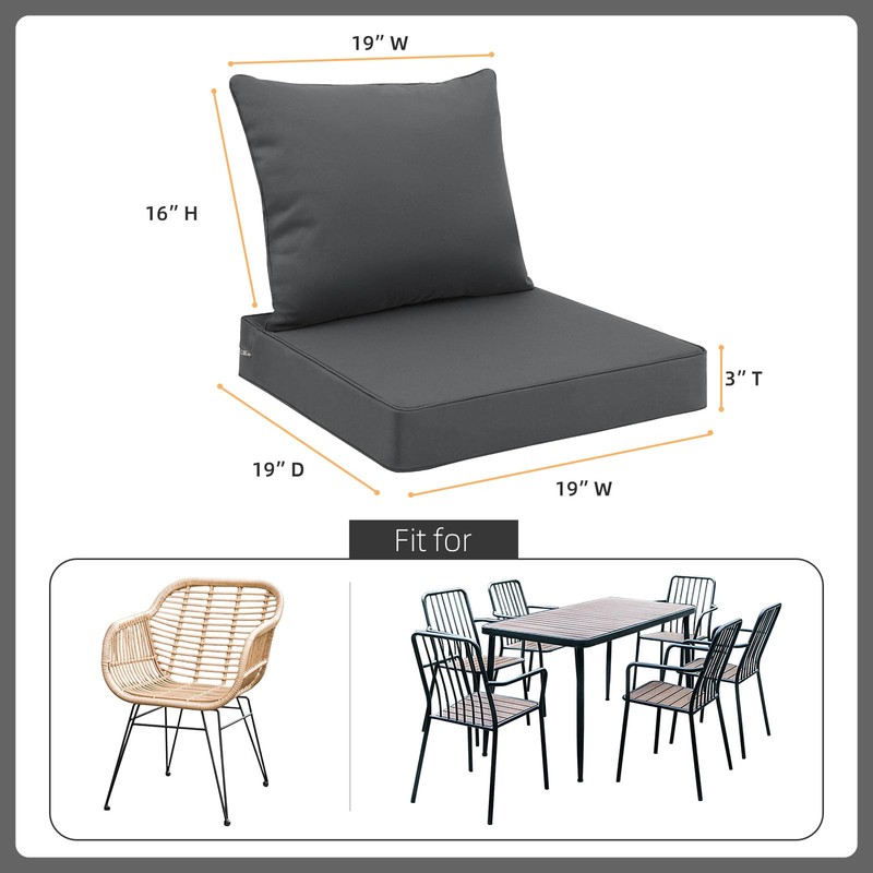 - Size Selection Guidance and Warranty: Set includes 1 seat cushion measuring 19” W x 19” D x 3” T and 1 back cushion measuring 19” W x 16” H. Measuring the dimensions of your furniture before purchasing is a really effective way to choose the right size cushions for your furniture. All the Favoyard cushions come with 1 year warranty to make sure you can choose with no worry.