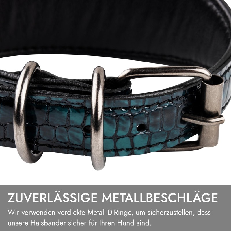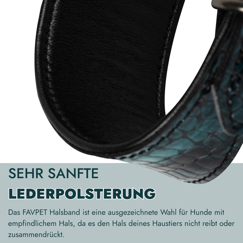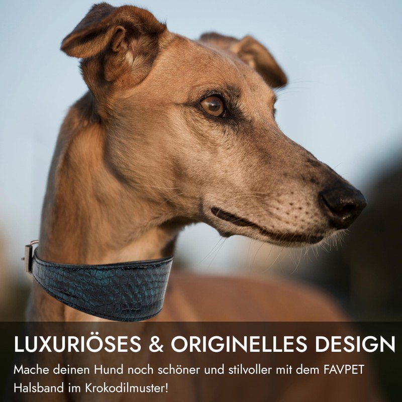 - Stylish choice: We pay careful attention to details and quality to make each collar dog leather look incredible. That's why we only use high-quality natural leather with crocodile pattern and varnish to create collars for dogs leather. This makes our wide dog collar very robust and gives them a luxurious look. Choose your favourite colour and make sure your dog looks great with a leather wide dog collar from FAVPET