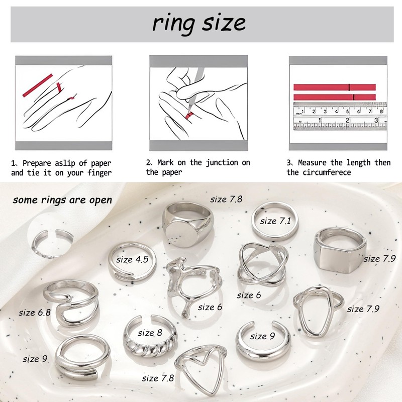 - 💎Silver Rings Set💎: You will get a 12 pieces gold ring set. Those rings come in many different styles, include heart, signet, square, tubular,chunky and twist ring. There are enough quantity to meet your different outfits, match a best look for yourself!