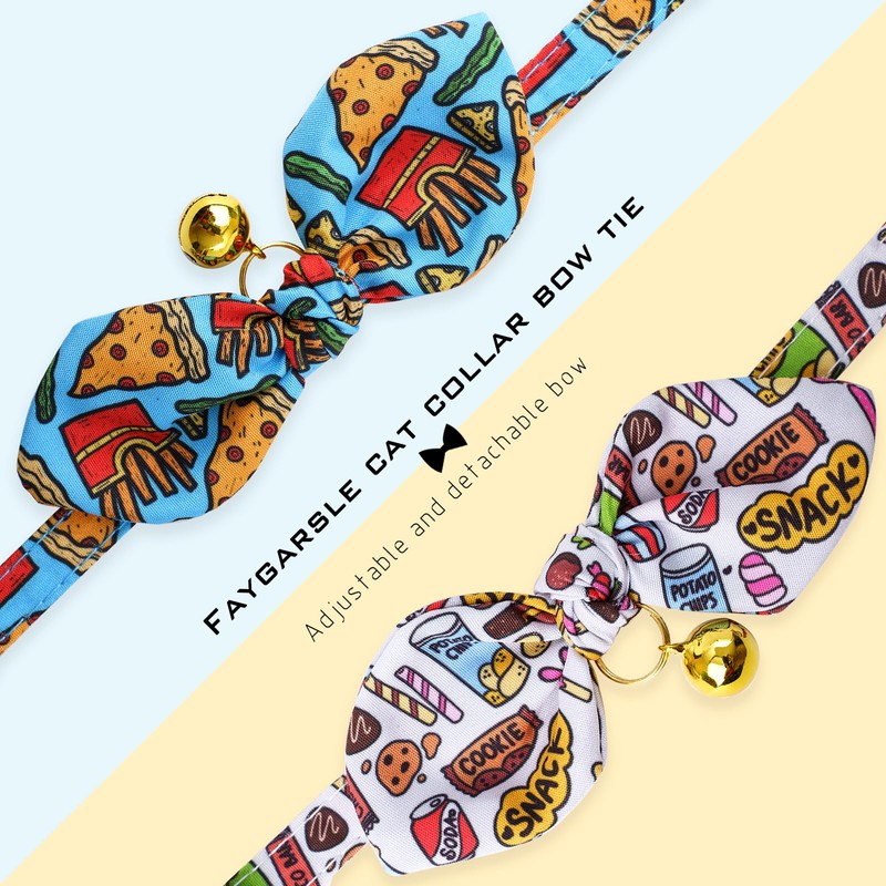 Faygarsle 2 Pack Breakaway Cute Cat Collars with Bow Ties Pattern with Pizza Snacks for Female and Male Cats