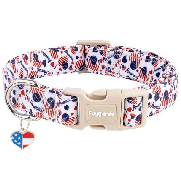 Faygarsle Patriotic American Flag Dog Collar Red White Blue Pattern Summer Design for Small Medium Large Dogs S