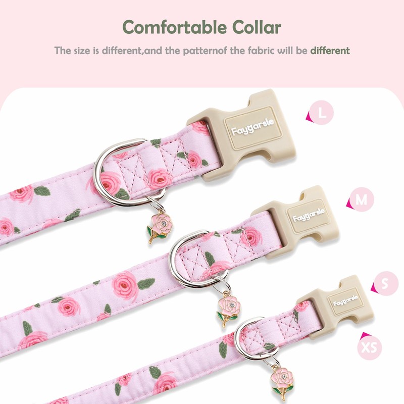 Faygarsle Pink Floral Dog Collar with Roses Pattern, Spring Summer Design for Small Medium Large Dogs XS