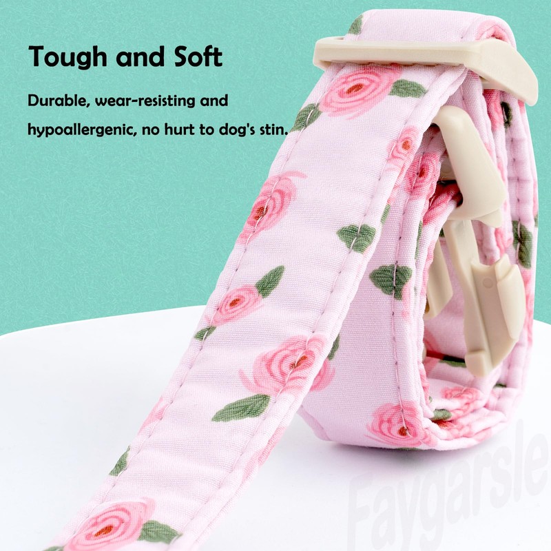 - DESIGN: Beautiful pink cotton collar featuring delicate rose and leaf pattern, perfect for female dogs with a feminine and charming style