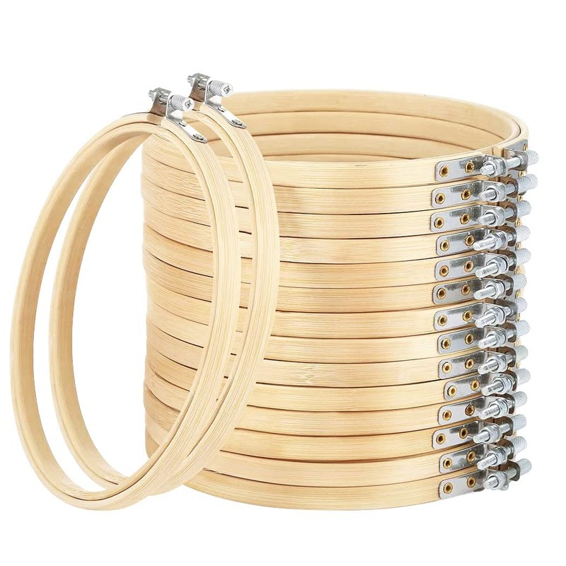 Faylapa Embroidery Hoops Set Adjustable Bamboo Circle Cross Stitch Hoop Round Ring,for Embroidery,Cross Stitch (6 inch 16pcs)
