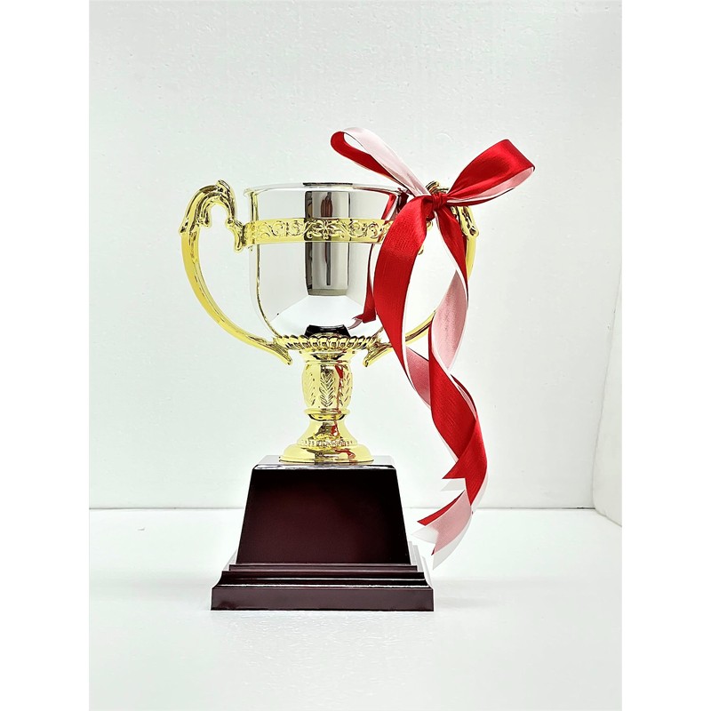 FB-125A Winning Cup 24.5cm Tall with Winning Letter Plate Resin Trophy 5 Pennants