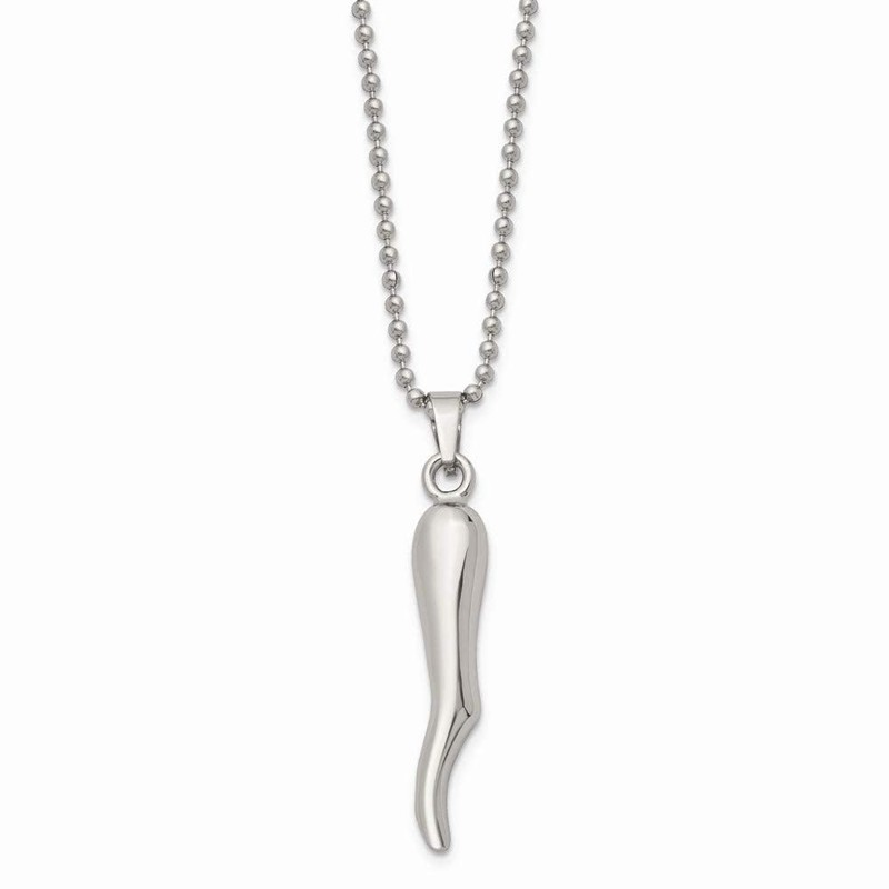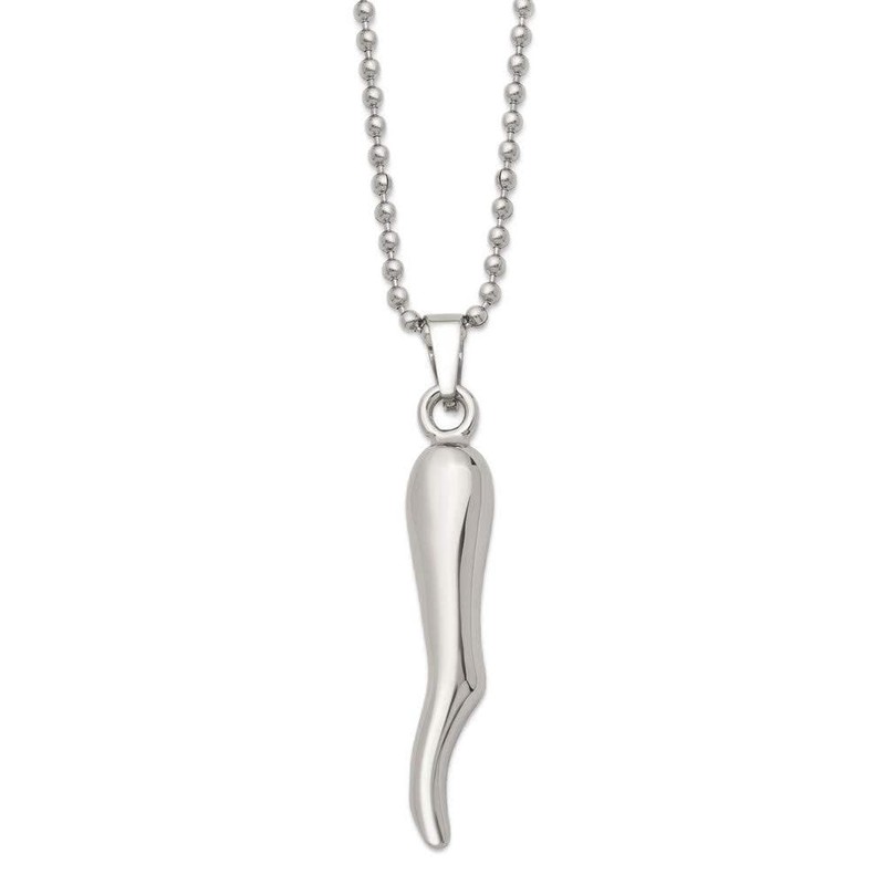 FB JEWELS Solid Stainless Steel Italian Horn Necklace