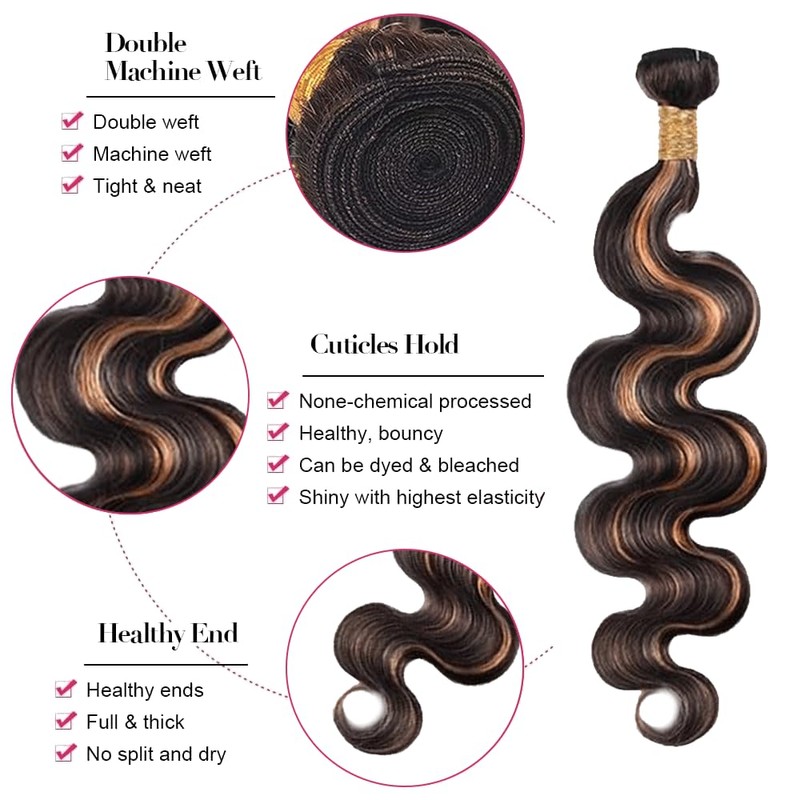 - P1B30 Bundles Material: Grade 8A Body Wave Brazilian Unprocessed Virgin Hair Bundles, Soft And Smooth And Bouncy, Thick And Full And Durabl