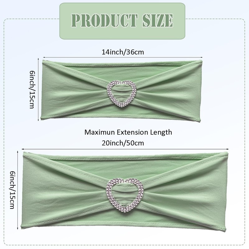 Fbewom Spandex Chair Sashes Bows 30 Pack Sage Green Chair Sashes Clearance Sage Sashes for Chairs Universal Elastic Chair Sashes Bands with Heart Buckle Slider for Banquet Wedding Party Decorations