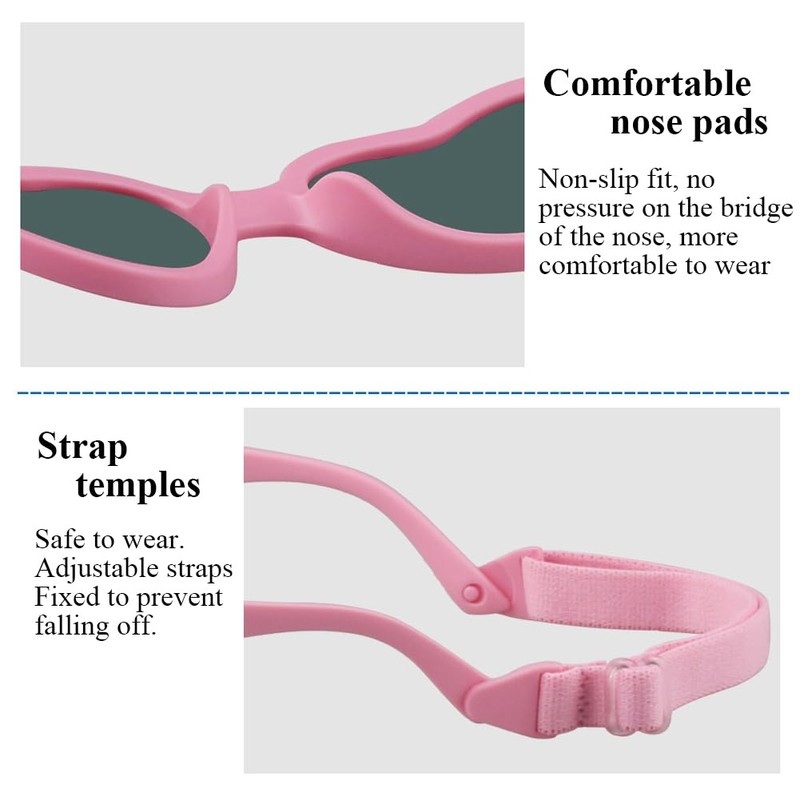- Adjustable Strap: These baby sunglasses come with an adjustable strap. For everyday wear, it adjusts to your baby's head size, securely holding the sunglasses in place and providing a great fit.
