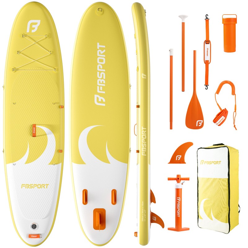 FBSPORT 11' Premium Stand Up Paddle Board, Yoga Board with SUP Accessories & Carry Bag | Wide Stance, Surf Control, Non-Slip Deck, Leash, Paddle and Pump for Youth & Adult