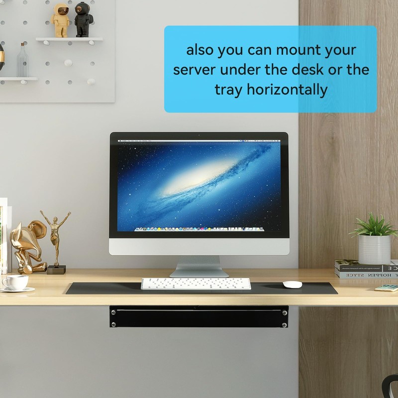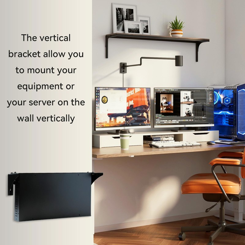 • The vertical bracket allow you to mount your equipment or your server on the wall vertically,also you can mount your server under the desk or the tray horizontally.