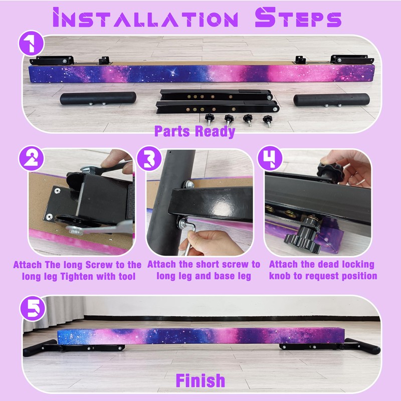 - 【MULTI-FUNCTIONAL BEAM】Perfect Design for beginners and high skilled training,Popular 8ft in length,4” width .Floor beam height 6.7” and Adjustable height from 17”,19”,21” to 23” perfect for turning, walkover, jumping, leaping, handsprings and more.