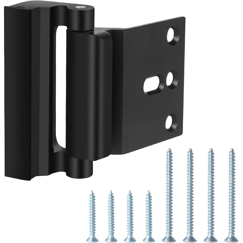 Fcicarn Reinforced Interior Door Lock, Childproof Home Security with an 800lb 3" Steel Stop Installed with 8 Screws for Inward Opening Doors, Black
