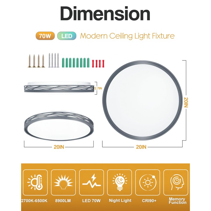 - High Performance & Energy Saving: Our LED flush mount ceiling light fixture features the latest advanced LED technology with 156 LED beads built-in, producing up to 8900lm brightness by using 70W. With advanced high-efficiency LEDs, saving a lot of money on your electricity bills and reducing re-lamp frequency. No bulbs are needed, excellent replacement of traditional bulbs
