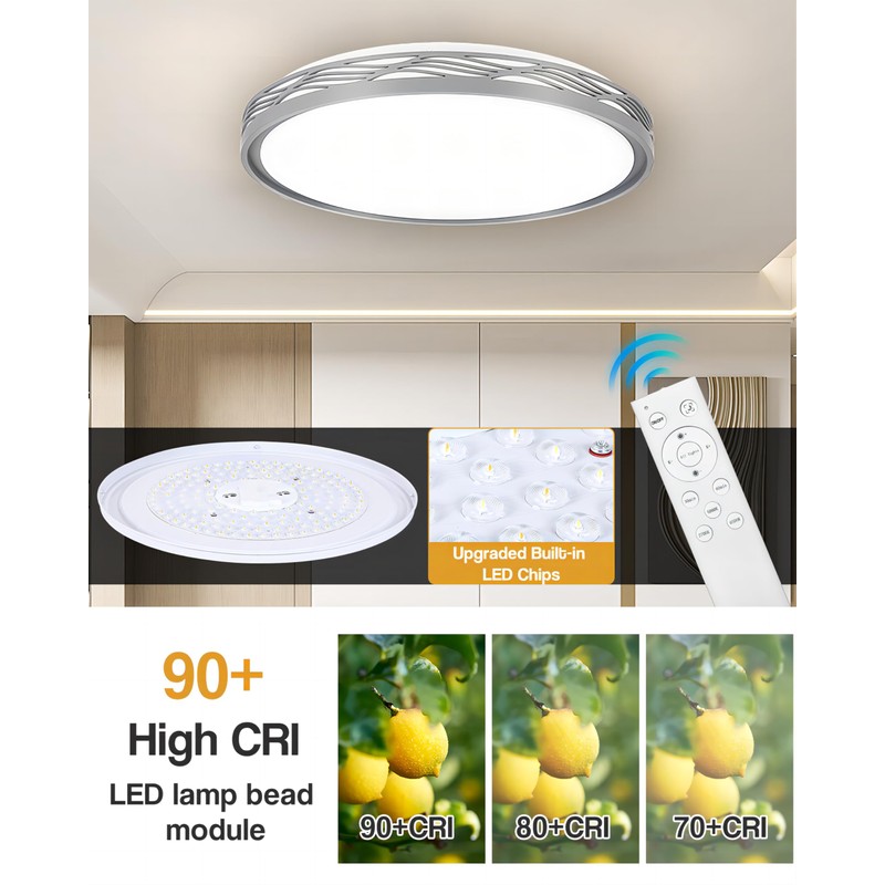 - High CRI & No Flicker: The LED flush mount ceiling light has 8900lm and CRI 90+, which can make the light closer to the real and original color of the object and gives you an extraordinary comfortable bright experience. The unique lighting design enables the ceiling light fixtures to emit uniform without flicker and glare, protecting your eyes from harsh and glaring lights