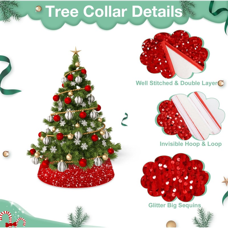 â4.Easy Installation-- Tree collar red is designed for easy installation and removal. The red sequin tree collar is stitched with hidden hoop and loop, allowing for quick setup and take off.