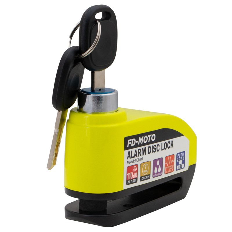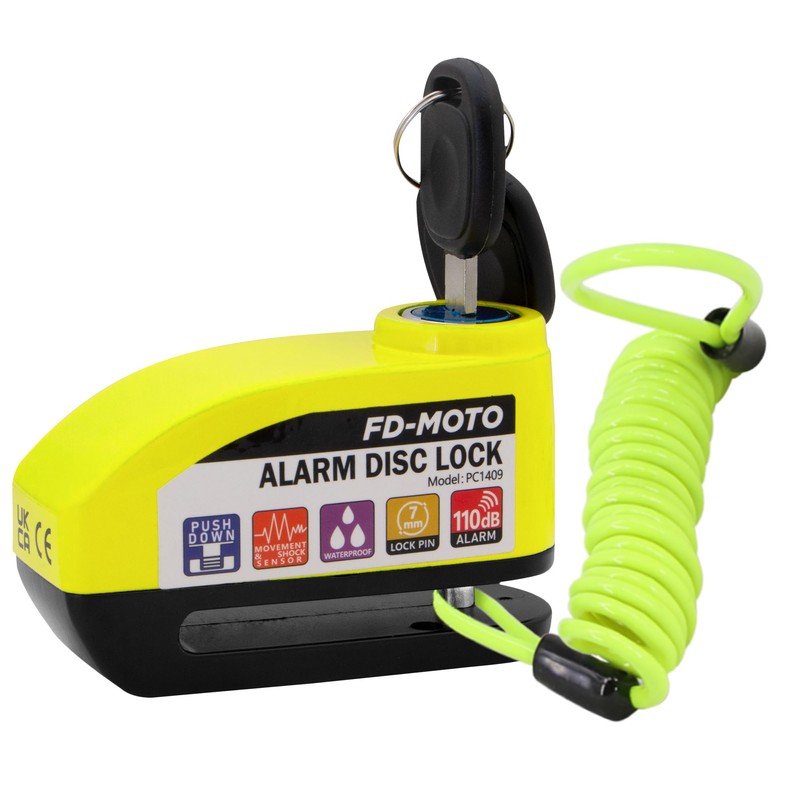 FD-MOTO Alarm Disc Lock & Reminder Cable Black/Yellow Green