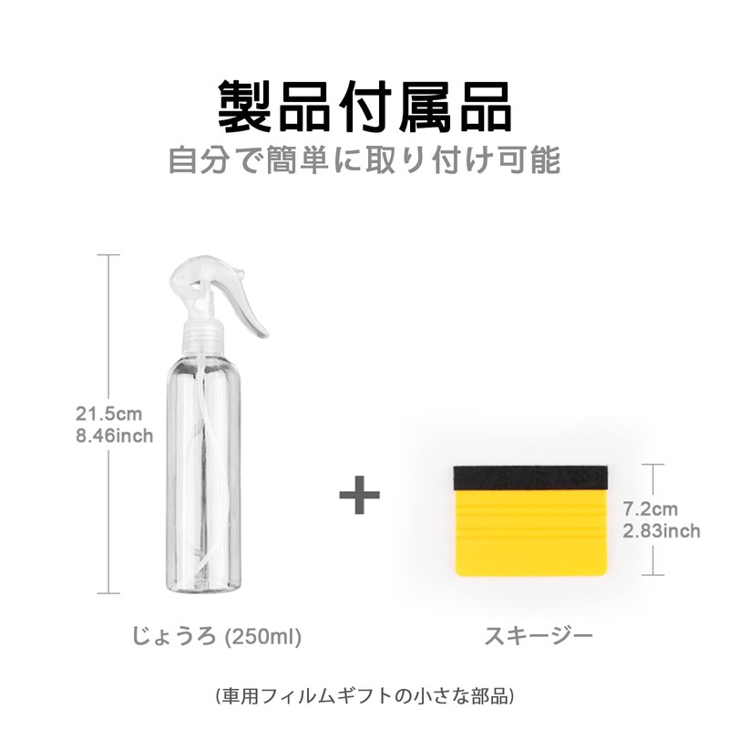 - 【取り付け簡単】取り付け前に車体の寸法を比較することができます。まず車の表面のホコリや汚れをきれいにしなければならない。貼り付け前、保護フィルムを剥がし、車体とフィルムに水をかけてください。貼り付け後、スクレーパーを使用して空気や水分を追い出します。製品の詳細にある取り付けビデオと取り付けチュートリアルをご覧ください。