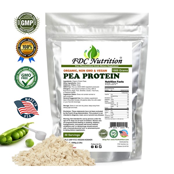 FDC NUTRITION Organic Pea Protein Powder - Vegan -NON-GMO -HIGH PROTEIN - Pro Isolate 2.2lb