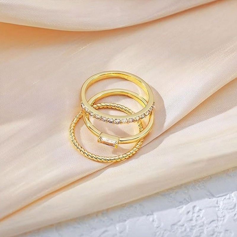 FDEETY Pack of 3 Women's Stackable Rings 14K Gold-Plated Cubic Zirconia Ring Hypoallergenic Stylish and Elegant Rings Suitable for Daily Life Party Wear, Zinc