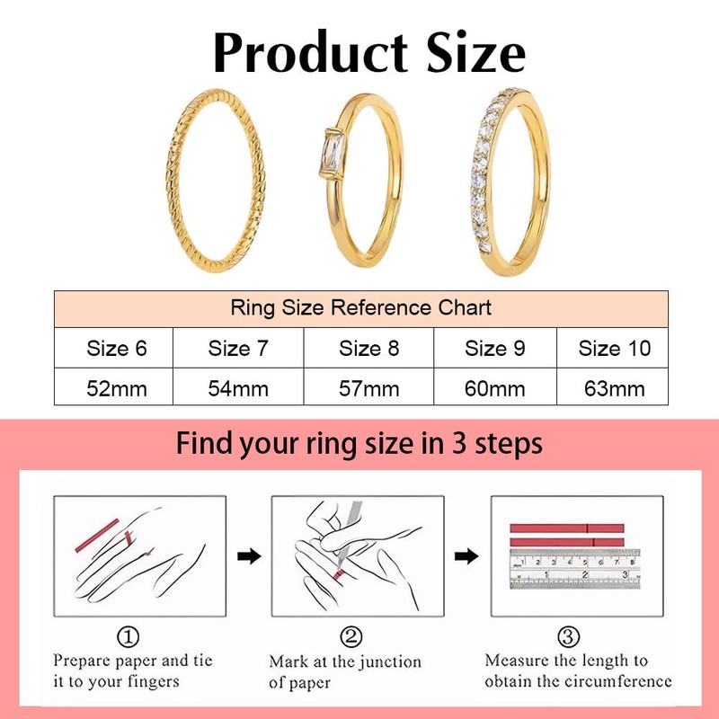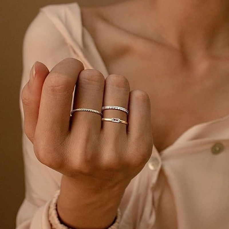 • DESIGN ELEMENTS This stunning ring set features an elegant, stackable design with sparkling cubic zirconia stones. Each ring can be worn individually or in combination, and the simple yet elegant design makes it the perfect addition to any jewellery collection.
