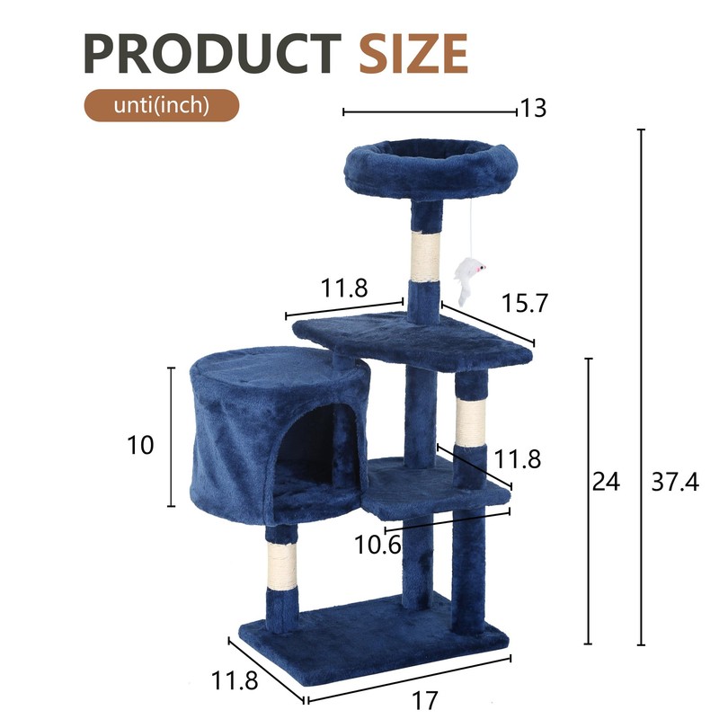 - 🐈[ Protect Your Furniture ] This multi-level cat tree protects furniture from cat scratching by featuring natural sisal rope scratching posts. It keeps cats entertained and protects the home, providing peace of mind for both cats and owners. Say goodbye to scratched furniture with this cat condo.