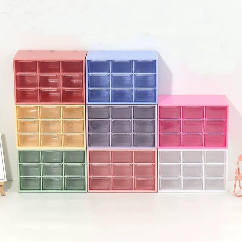 ·【Product Details】Sturdy plastic with 9 transparent drawers, the drawers can open independently and removable, Plastic organizer box is can be mounted on wall