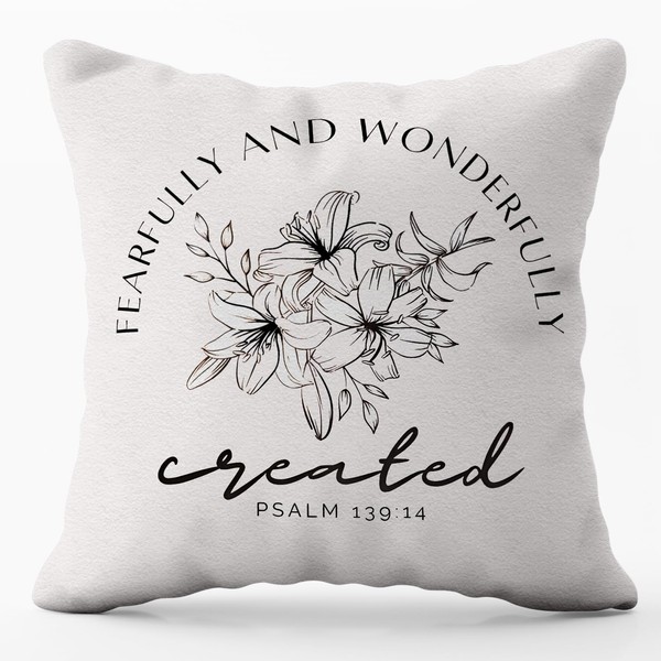 Fearfully and wonderfully Created psalm Throw Pillow Covers 18x18 inch Christian Bible Verse Pillowcase Wildflower Christian Gifts,Religious Pillowcase,Christian Gifts for Women Girl