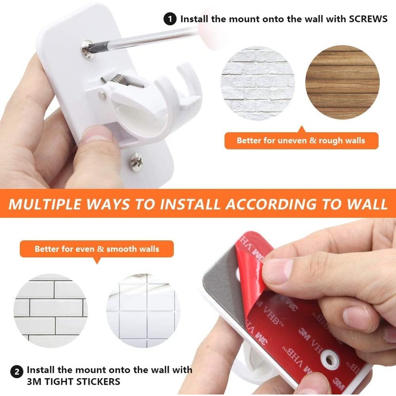 - [MULTIPLY INSTALLATION] Suit for all kinds of walls. If your wall is uneven or rough, please install the mount onto the wall with SCREWS; if your wall is even & smooth walls, please install the mount onto the wall with 3M TIGHT STICKERS.