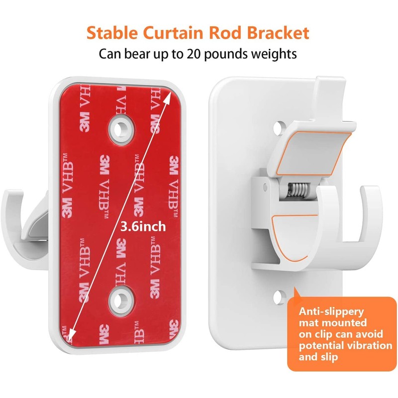 - [EXCLUSIVE DESIGN] Made of high quality plastic material & stainless steel used for mount clip, sturdy & durable, ensure a long service time. Can hold all kinds of curtain rod sizing from 5/8-'' to 1 1/8-'', satisfy all your needs for holding your curtain.
