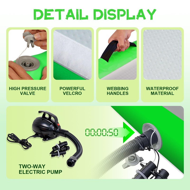 FEATH-R-LITE 10ft Inflatable Gymnastics Tumble Track Tumbling Mat 4in Thick Air Floor Tumble Track with Electric Pump for Cheer Leading/Gymnastics/Beach/Gym/Home(Green)