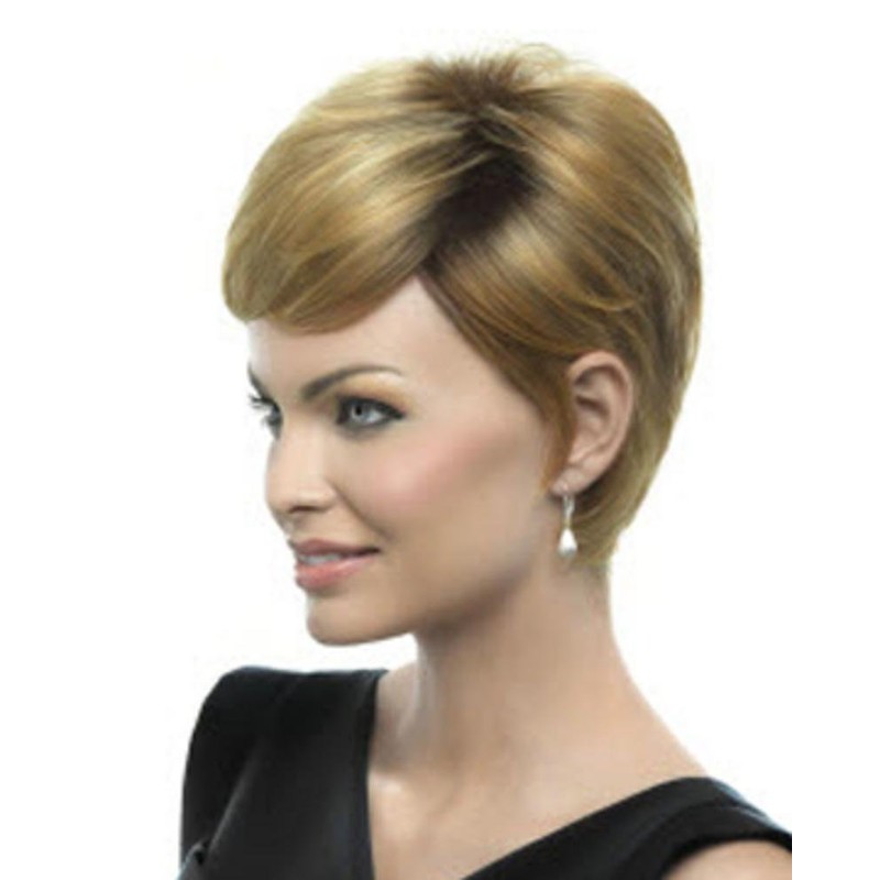 - Feather Cut Wig Color R14/25 HONEY GINGER - Hairdo Wigs 3.5" Short Layered Boy Tapered Nape Tru2Life Heat Friendly Synthetic Capless