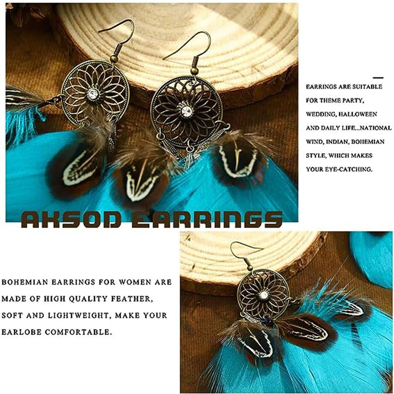 Feather Earrings Boho Earrings for Women Feather Tassel Dangle Earrings Bohemian Wedding Party Earrings Jewelry Gift