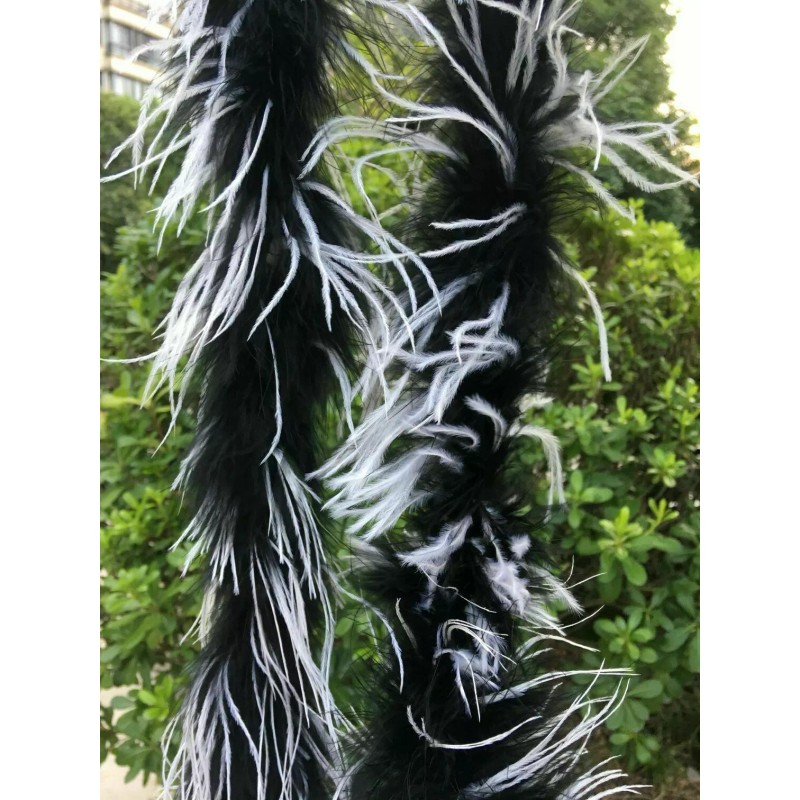 Feather Paradise 27g Black Marabou Boa with White Ostrich Feather Boa Fluffy Two Tone Boa 2 Yards