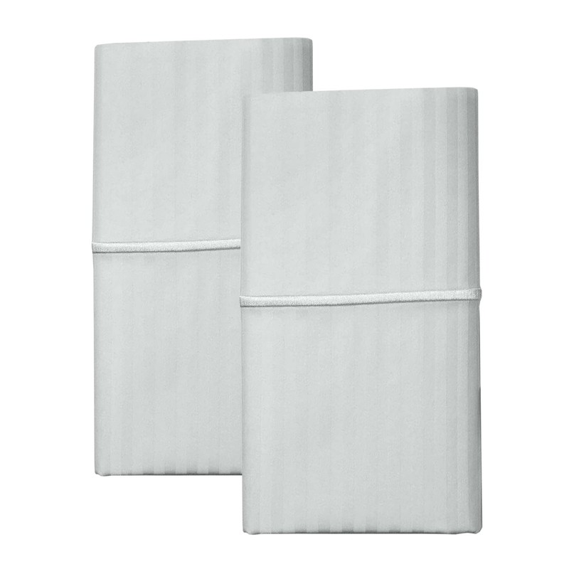 Feather & Stitch Pillow Covers Set of 2, Envelope Closure King Size Pillowcases, Soft Luxury 500TC Damask Stripe Sateen Weave Pillow Case, 20x40 Inches - Blue Blush