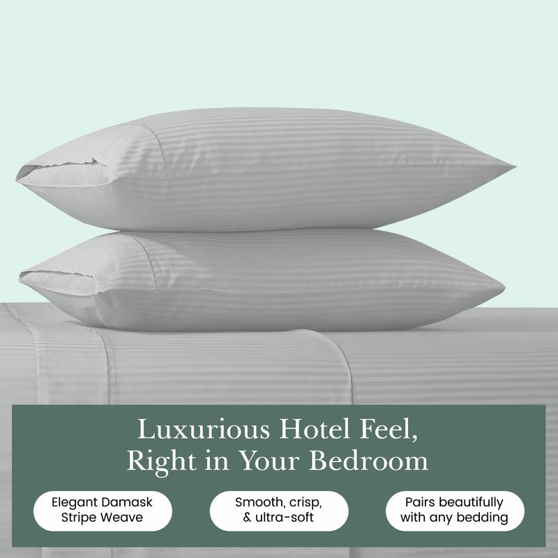 - 100% Cotton Damask Striped Pillowcase Set : Add elegance to your room with our damask stripe pillow inserts, creating a hotel-inspired feel. Experience unmatched comfort and sophistication with our Satin-stitch Damask pillowcase Set. Made from premium cotton fabric, it offers a cooling sensation and features a vibrant satin-stitch damask pattern. Elevate your bedding with this luxurious set for a peaceful and comfortable sleep.