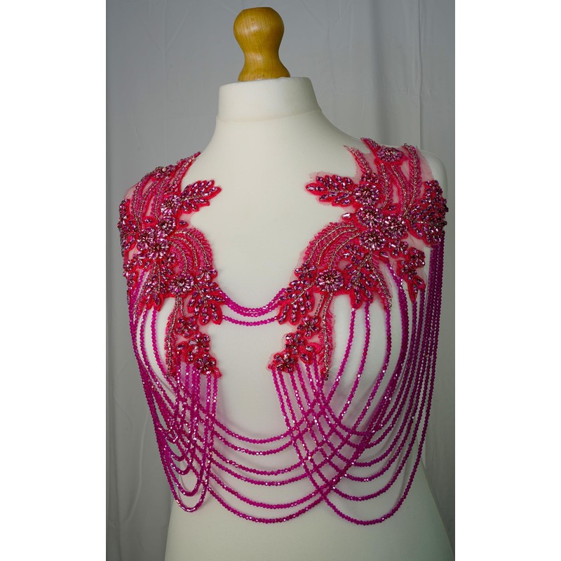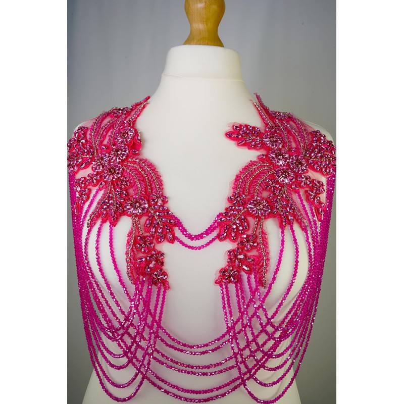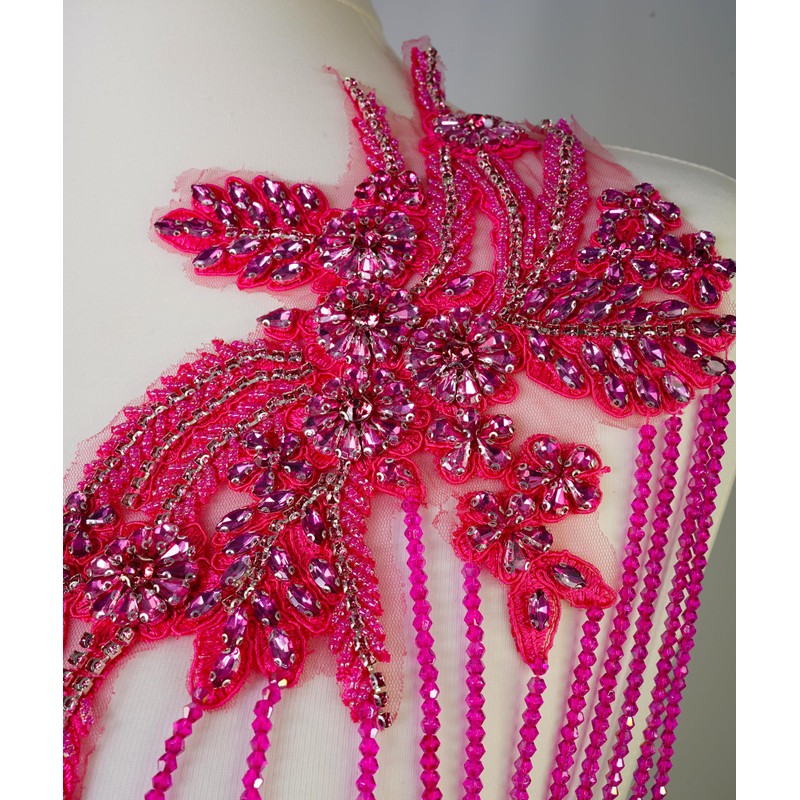 Feathers Creation Ltd Rhinestone Applique with Chains and Motif Applique for Dance Costume,Rhinestone Bodice for Wedding Dress,Ball Gown Colourfull Sew on Costume Design Acessories (Hot Pink)