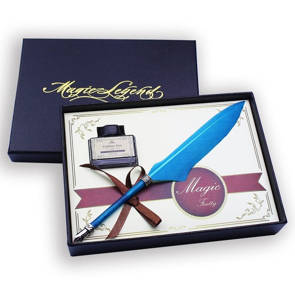 Featty Gifts Cool Stationery Set Feather Dip Pen Quill Writing Pen(Acid Blue)