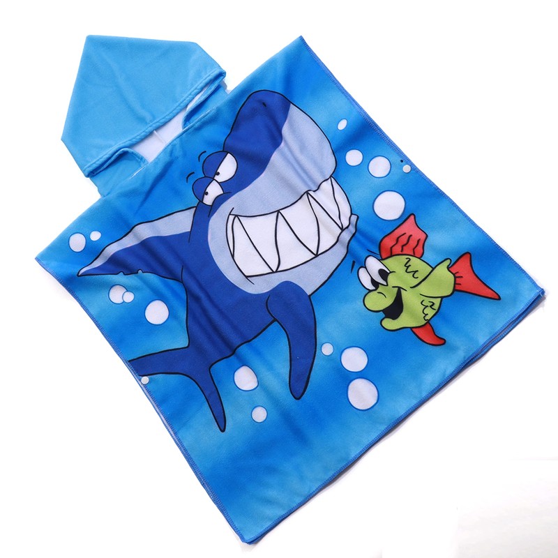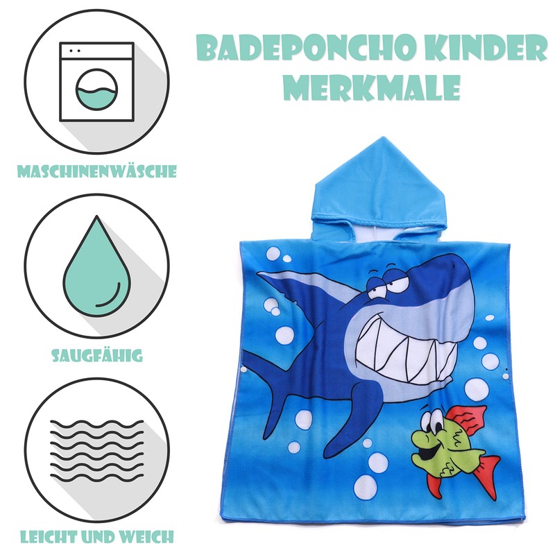FEBE Bath Poncho Children's Bath Towel with Hood Bathrobe for Toddlers, shark