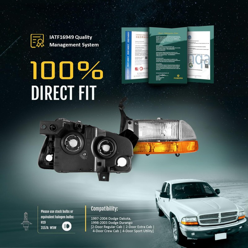 - 【100% Original Fit】 Compatible with 1997-2004 Dodge Dakota, 1998-2003 Dodge Durango [2-Door Regular Cab | 2-Door Extra Cab | 4-Door Crew Cab | 4-Door Sport Utility]. We comply with strict SAE (Society of Automotive Engineers) standards, assuring both safety and reliability