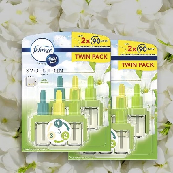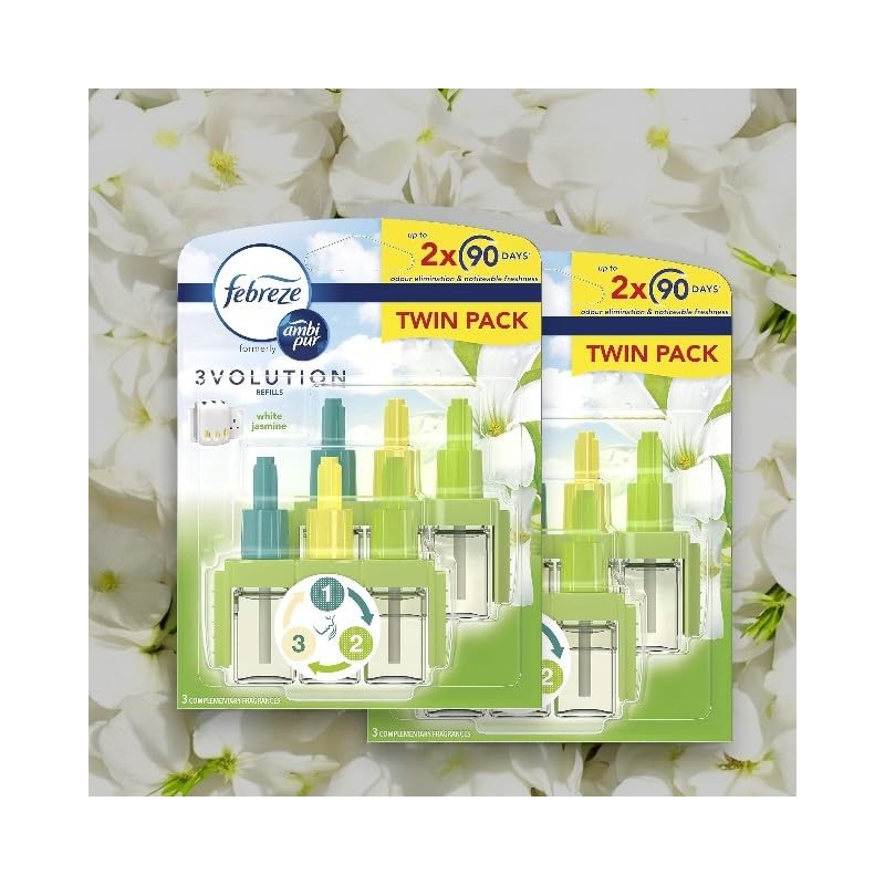 Febreze 3volution Plug in Refill WHITE JASMINE, 2 x (2 x20ml) - Total 4 refills, Suitable for Ambi Pur old and New devices