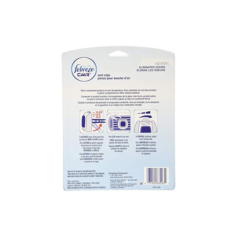 - Febreze CAR vent clips attach easily and act instantly