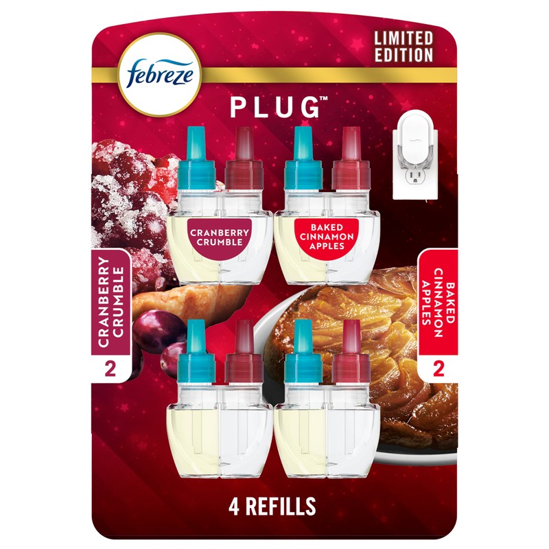 Febreze Febreze Odor-Fighting Fade Defy PLUG Air Freshener Baked Cinnamon Apple, Cranberry Crumble, .87 fl. oz. Oil Refill, 2 of Each